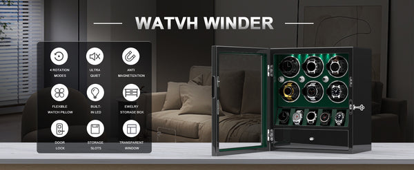 Kompakter Uhrenbeweger für 6 Uhren mit Stauraum für 5 zusätzliche Uhren, Mabuchi Motor – Grün